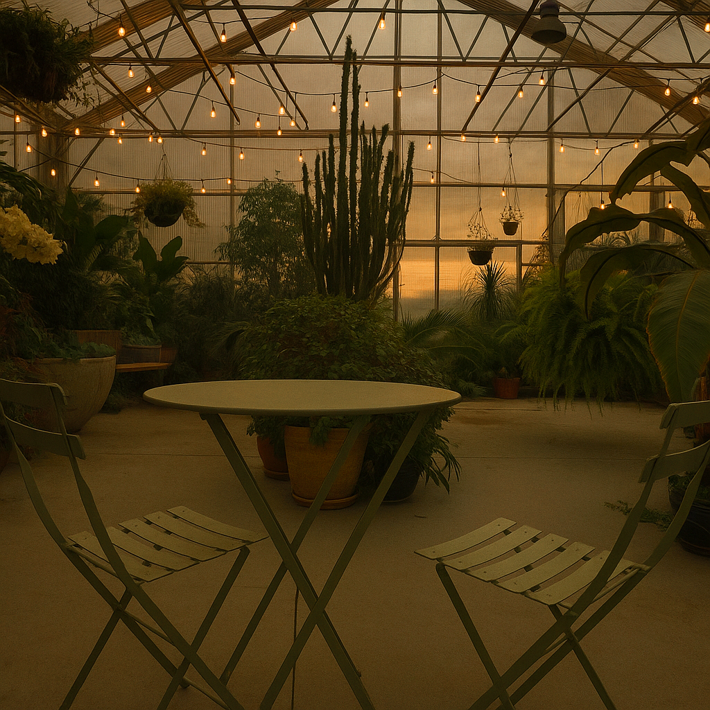 Mingle with friends as you graze on delicious food and beer while enjoying the greenhouse plants, water fountain, & string lights! Chill by the fire pit listening to live
